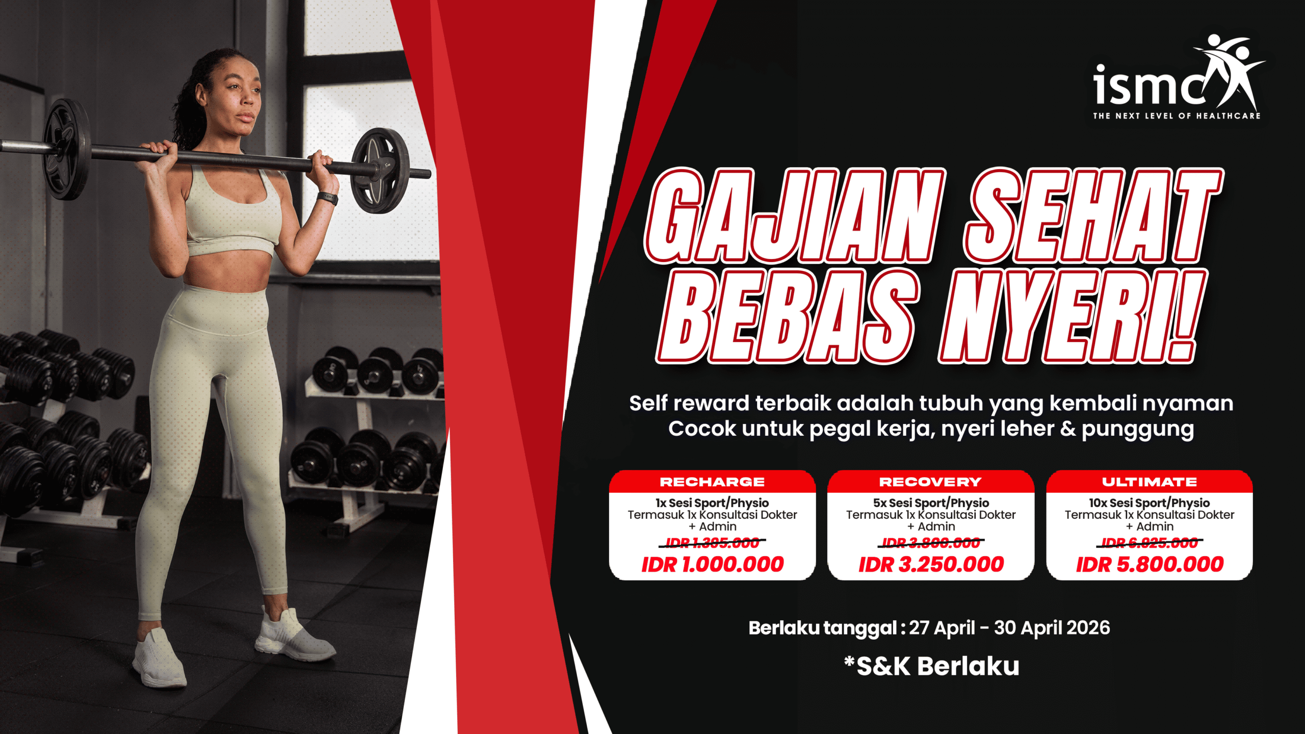 ISMC adalah klinik kedokteran olahraga yang pertama di Indonesia. Yang terdiri dari Dokter Spesialis Olahraga, Dokter Spesialis Ortopedi, Fisioterapi dan Sports Trainer yang kompeten dan dapat memberikan Anda pelayanan kesehatan yang terbaik dan komprehensif.